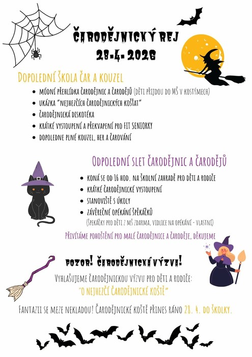 Odpoledne od 16 h. přivítáme na školní zahradě i celé čarodějnické rodiny našich malých čarodějů a čarodějnic :-).