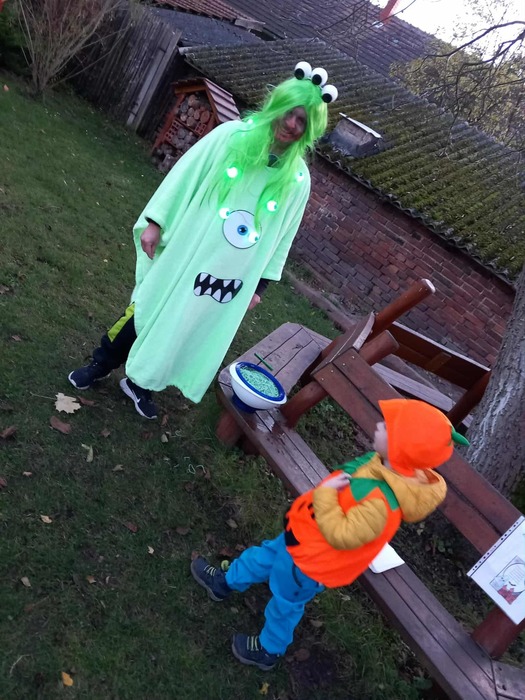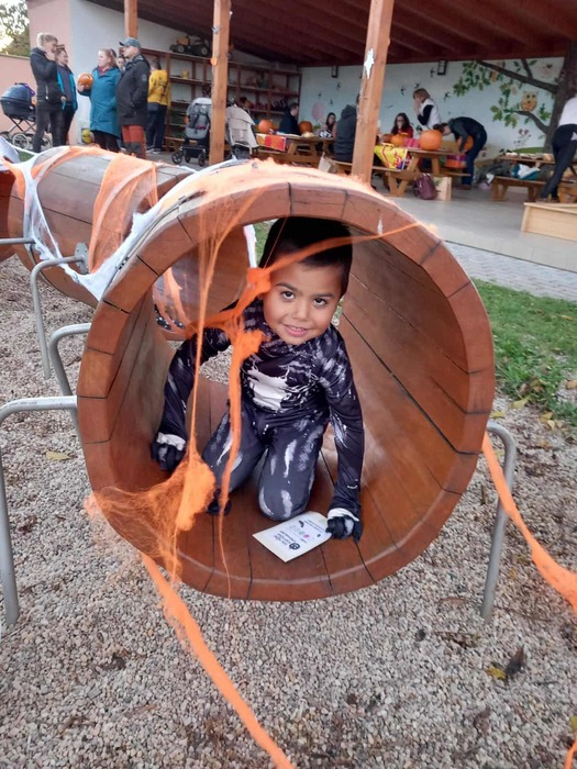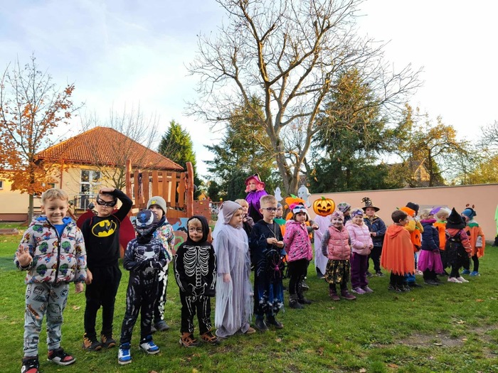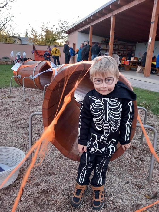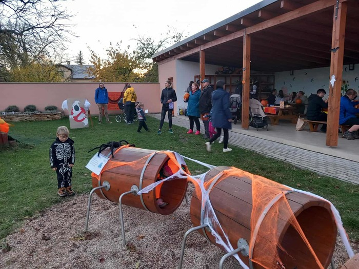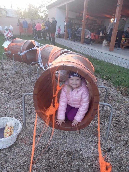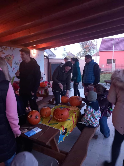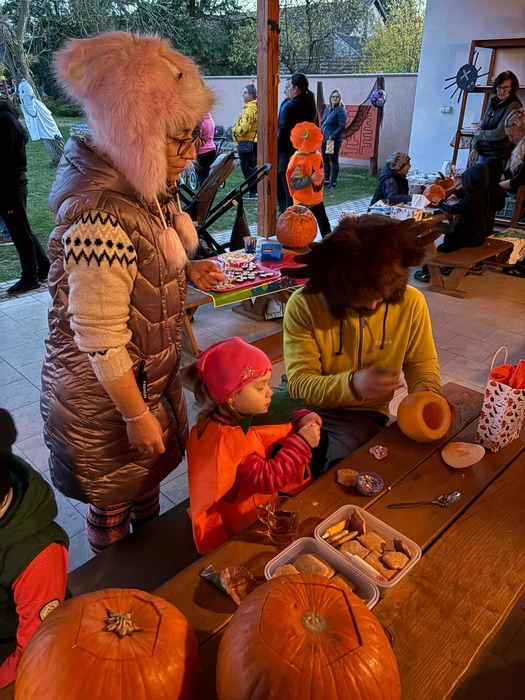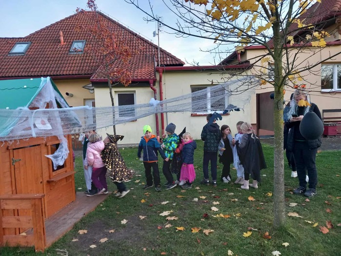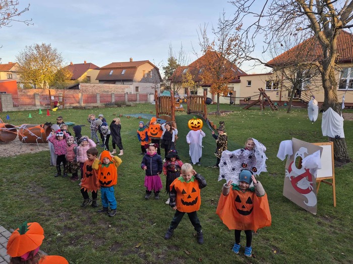 Středeční odpoledne patřilo strašidýlkům a legraci. Děti dorazily v krásných kostýmech, předvedly krátké vystoupení a s nadšením plnily úkoly na připravených stanovištích. Nechybělo dlabání dýní a společné posezení. Děkujeme rodičům za podporu a za skvělé pochoutky, které připravili. Vznikla tak příjemná podzimní atmosféra plná smíchu, tvoření a společných zážitků.