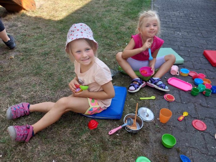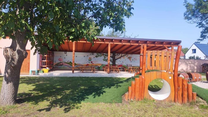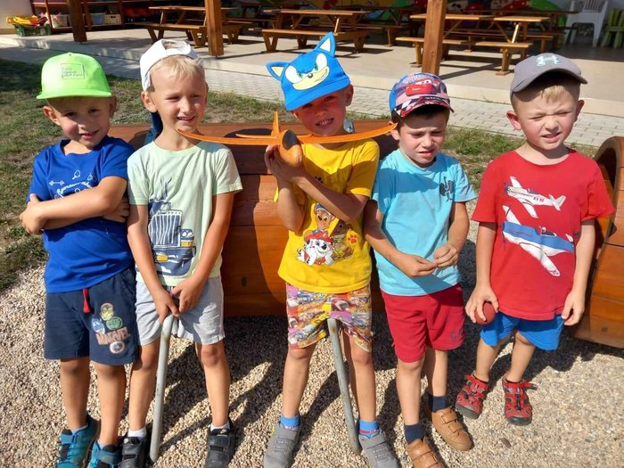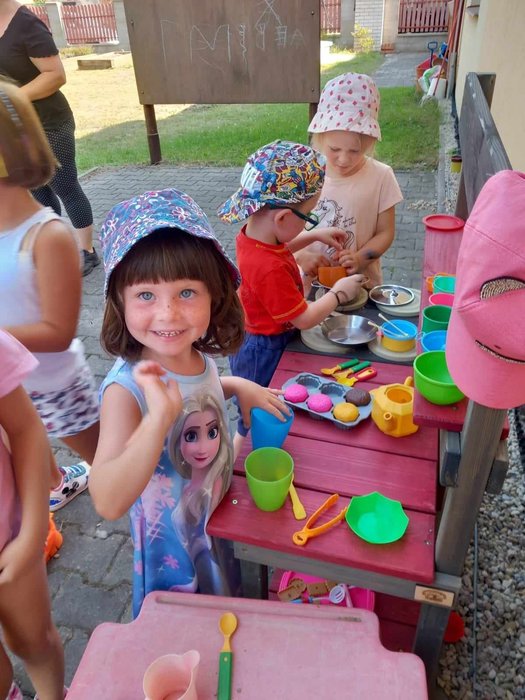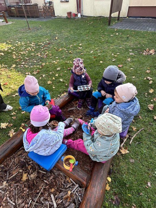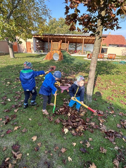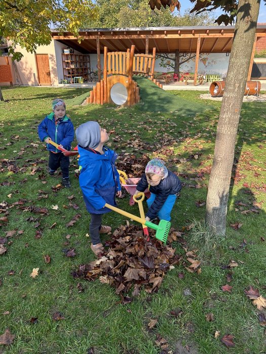 Když se mračím maličko, vím, že je tu sluníčko, které na nás z nebe kouká, podzimní tóny si tiše brouká. Než napočítáš do pěti, zahrádka bude plná dětí.