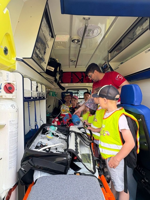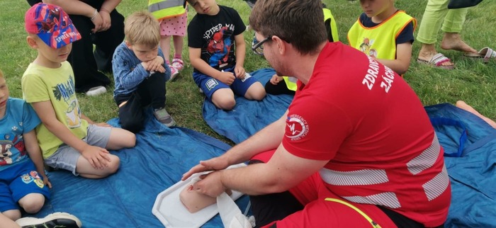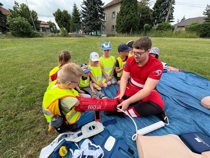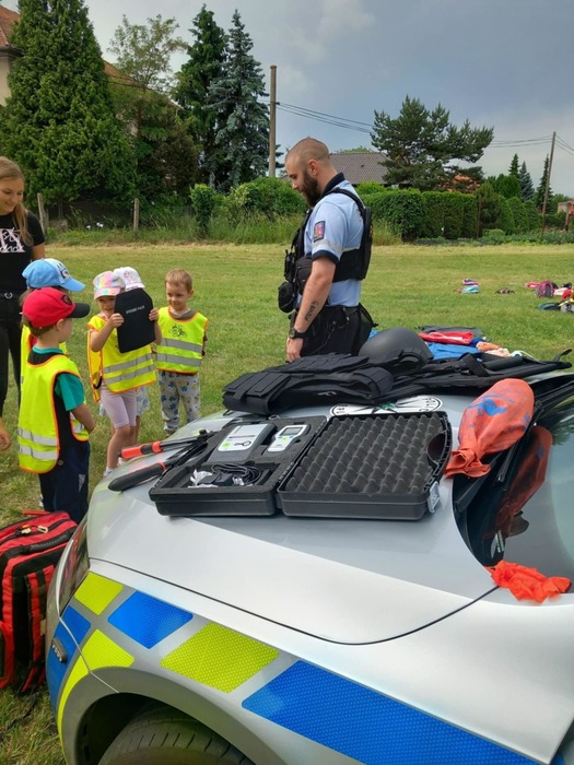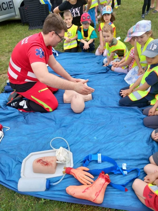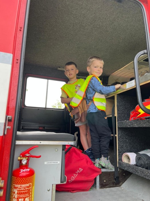 Velkým zážitkem byl pro nás průzkum hasičského a policejního vozu. A také názorné ukázky zdravotnické práce s figurínou v sanitce a záchrana zraněného pod odborným dohledem.