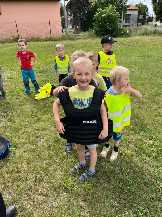 Další z programů zaměřených na prevenci se konal přímo v Třebestovicích. Setkali jsme se s policií, hasiči a záchranářem a ti nám představili svoji práci a pomůcky a ochranné věci, které k ní využívají. Spoustu věcí jsme si mohli i vyzkoušet, což se setkalo s nadšením.